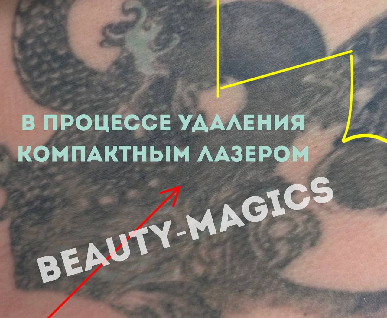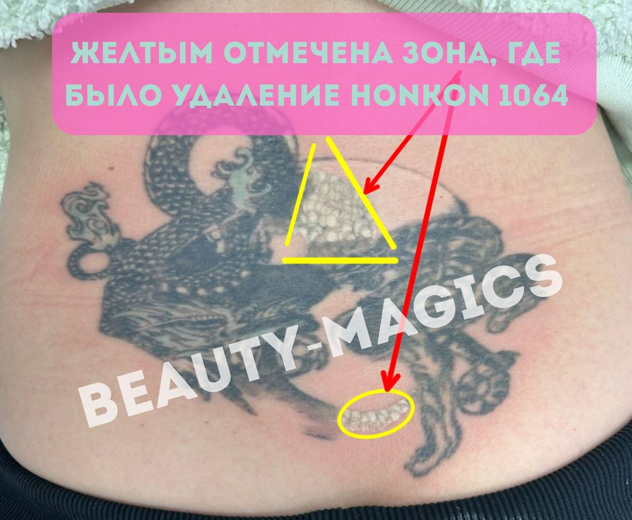 В данном эксперименте мы удалили татуировку в основном на компактном лазере, и часть на стационарном лазере Honkon 1064