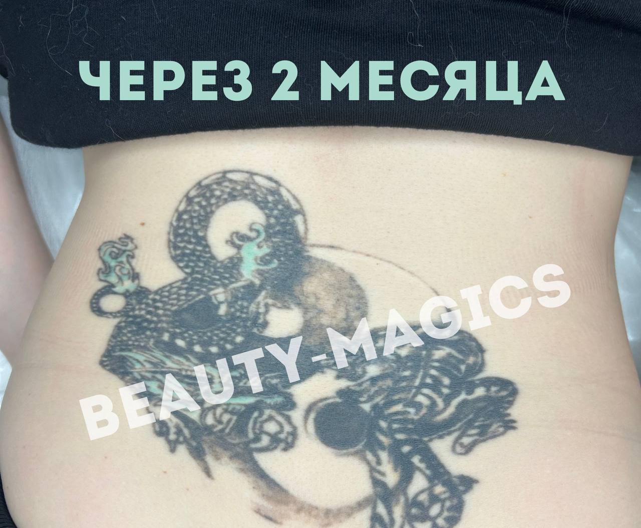 Через 2 месяца сделали контрольное фото данной татуировки, где мы видим четкую разницу в удалении тату